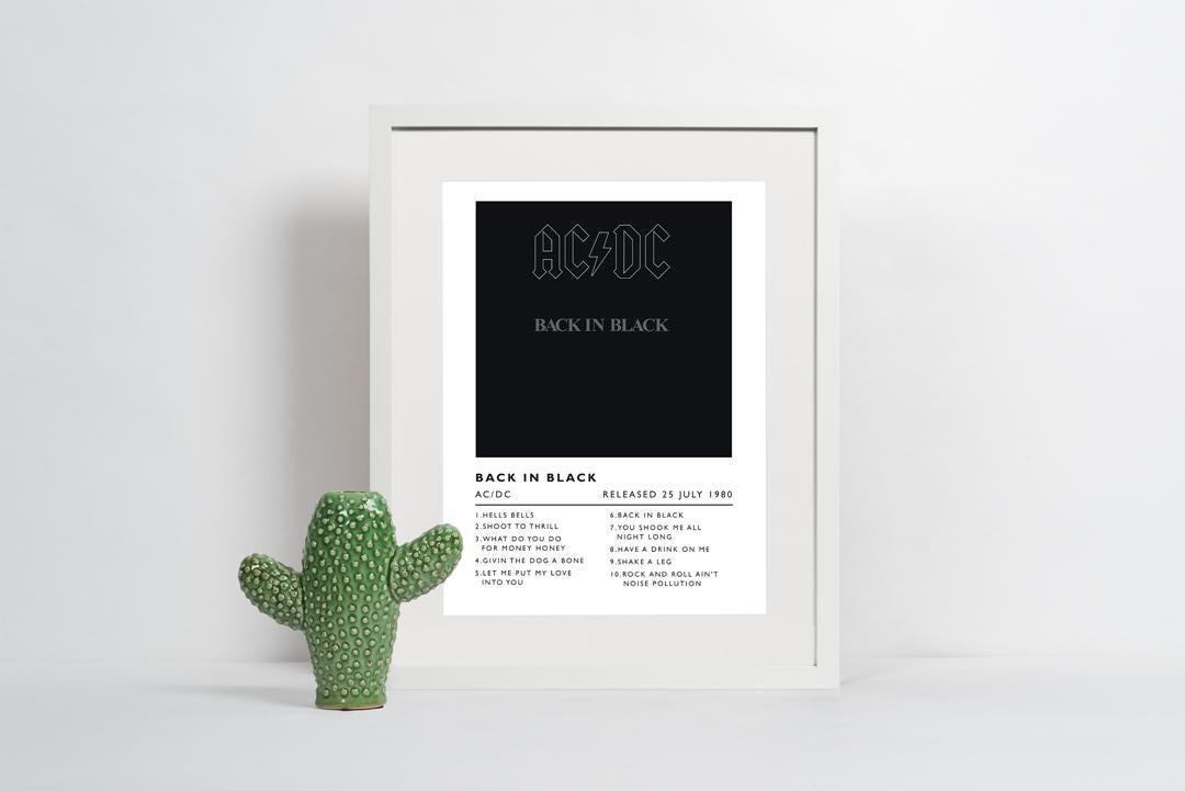 🎸 AC/DC – Back in Black | A3 Album Art Print – Retro Rock Wall Decor